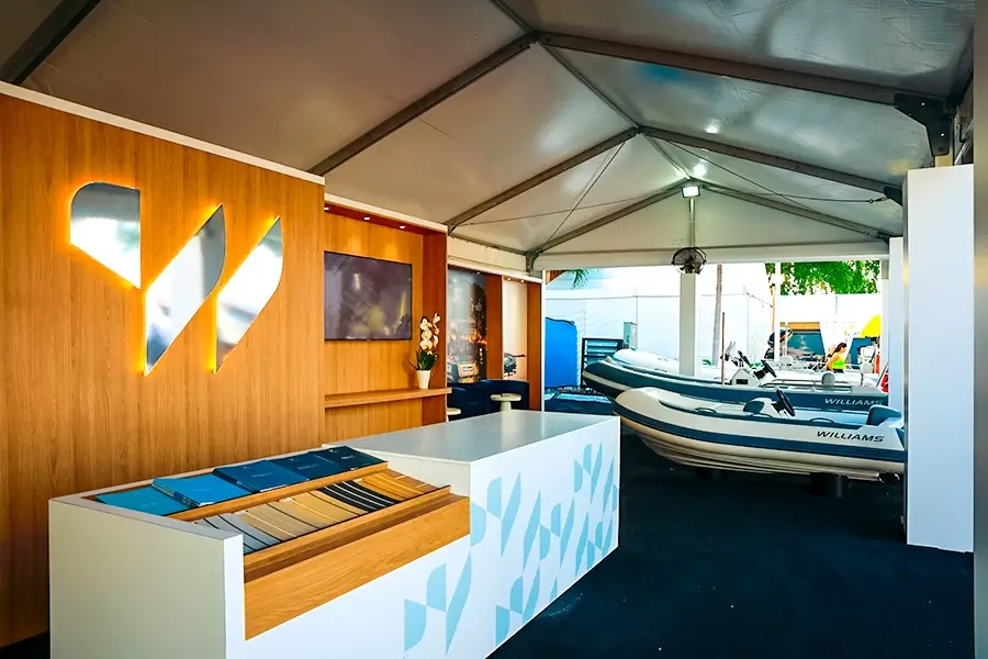 This required meticulous planning and innovative design to ensure that whether attendees encountered us in a vast exhibition hall or a more intimate space, the Williams Jet Tenders brand resonated with unwavering impact and elegance.